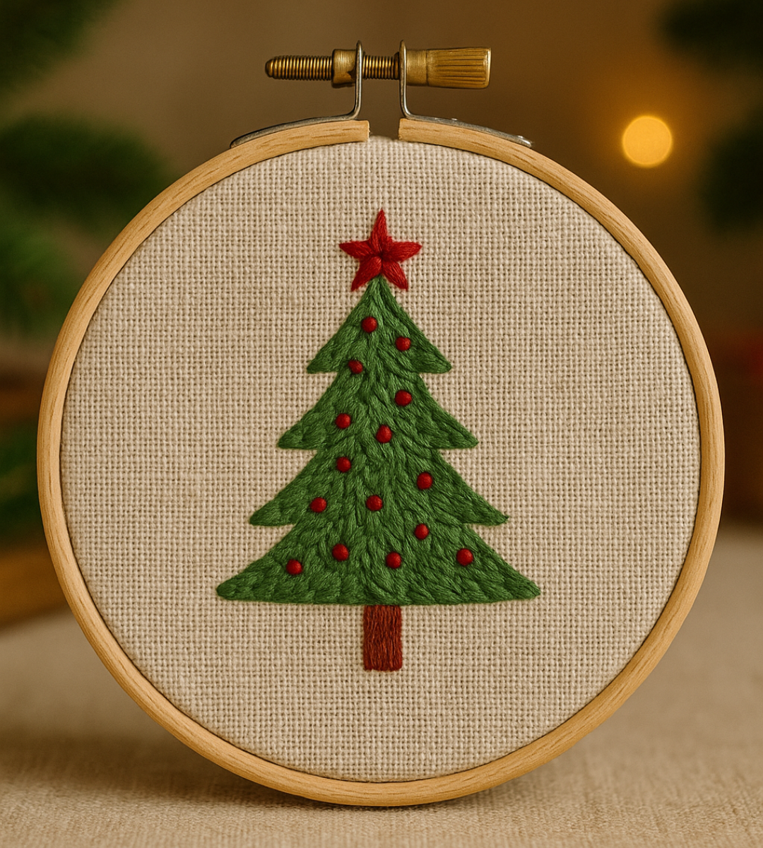 Descubra puntadas decorativas y sencillas mientras borda su propio árbol de Navidad. Elija y diseñe con sus hilos favoritos.